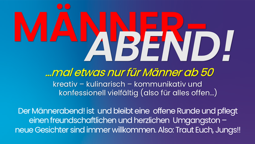 Der Männerabend ist und bleibt eine offene Runde und pflegt einen freundschaftlichen und herzlichen Umgangston - neue Gesichter sind immer willkommen. Also: traut euch Jungs!
